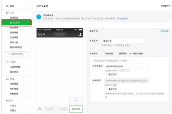 還記得公眾號底部的「自定義菜單」功能嗎?沒錯,「自定義菜單」也可以插入小程序鏈接。
