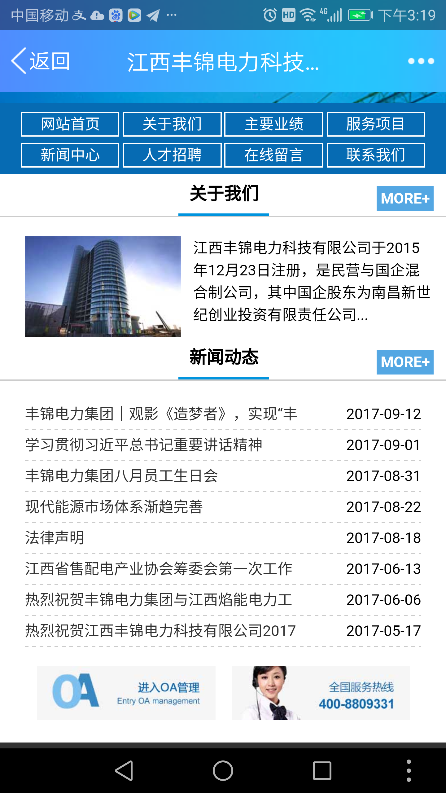 手機(jī)站相對(duì)于PC站而言顯得非常的簡(jiǎn)單精簡(jiǎn),并沒(méi)有PC端那么深的鏈接深度,一般情況下手機(jī)站的所有的主欄目都在首頁(yè)可以看到,大多數(shù)為三級(jí)精簡(jiǎn)欄目:首頁(yè) - 欄目頁(yè) - 詳情頁(yè)。以南昌雅騰科技給江西豐錦電力科技公司做的手機(jī)端網(wǎng)站為例。
