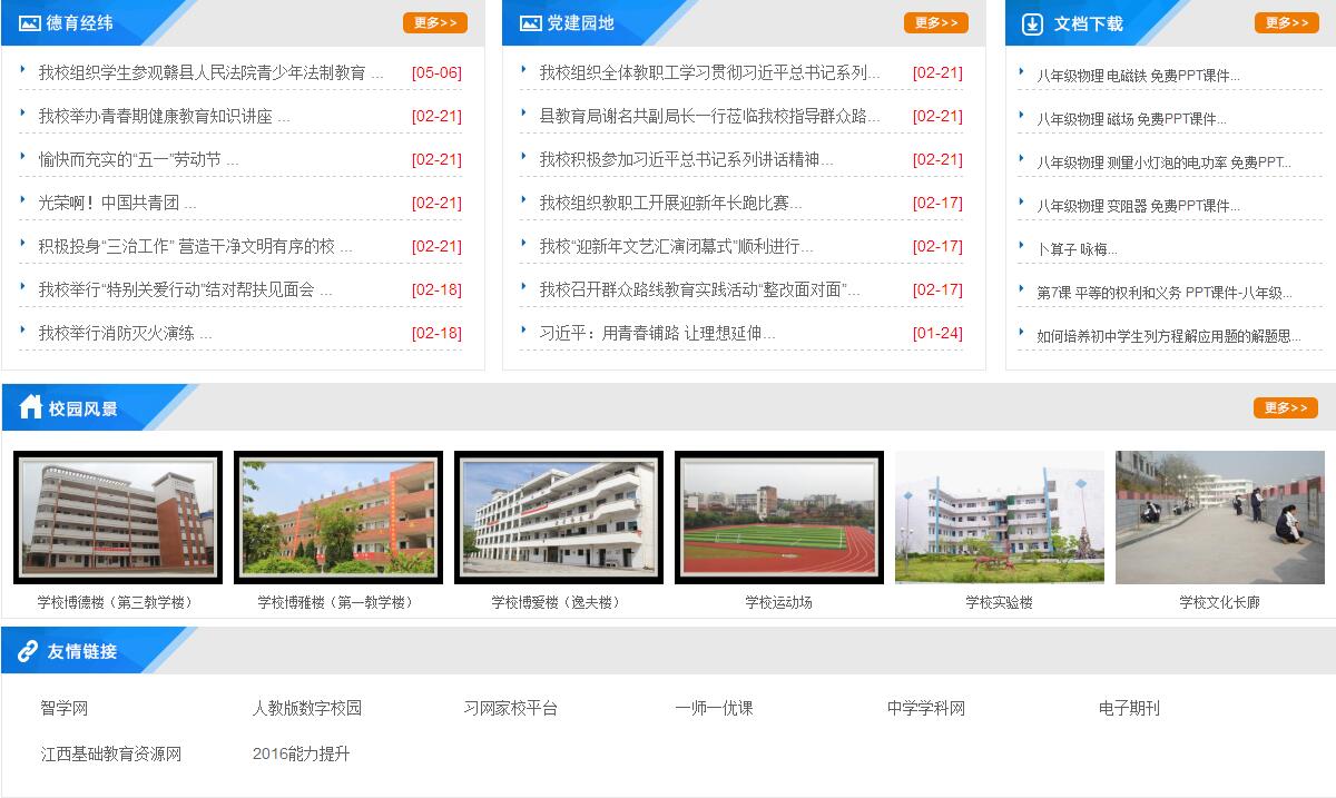 江西省贛縣第二中學(xué)校園占地60畝,在校學(xué)生4180人,共61個(gè)教學(xué)班;教職工195人,其中:國(guó)家級(jí)優(yōu)秀教練員1人,省特級(jí)教師1人,省學(xué)科帶頭人4人,省十佳班主任1人,省十佳語(yǔ)文教師1人,省骨干教師16人,市學(xué)科帶頭人和骨干教師31人。 贛縣二中以“博學(xué)多思、博德廣善、博愛(ài)泛眾;舉止優(yōu)雅、言行文雅、情趣高雅”為精神內(nèi)涵,以“民主治校、科學(xué)管理、共筑和諧、提升質(zhì)量”的辦學(xué)理念,以“全市起示范、全省爭(zhēng)地位、全國(guó)有影響”為奮斗目標(biāo),以“人文為本、制度為準(zhǔn)、工作為重”為職業(yè)素養(yǎng),以“團(tuán)結(jié)進(jìn)取、吃苦耐勞、開(kāi)拓創(chuàng)新、樂(lè)觀(guān)向上”為文化核心,以“環(huán)境更優(yōu)美、條件更現(xiàn)代、理念更先進(jìn)、校風(fēng)更純正、質(zhì)量更卓越”為基本任務(wù),“傳承 “篤志、博學(xué)、厚德、自律”校訓(xùn),形成了“愛(ài)崗敬業(yè)、開(kāi)拓進(jìn)取”的教風(fēng)和“求知、健體、懂事、創(chuàng)新”的學(xué)風(fēng)。 全體二中人與時(shí)俱進(jìn),開(kāi)拓創(chuàng)新,取得一系列成就。中考成績(jī)高分段人數(shù)、特優(yōu)生、優(yōu)生人數(shù)及一分兩率等各項(xiàng)指標(biāo)名列前茅。各類(lèi)競(jìng)賽碩果累累,先后有400多人次獲全國(guó)競(jìng)賽等級(jí)獎(jiǎng),其中有84人次獲全國(guó)競(jìng)賽一等獎(jiǎng),物理學(xué)科兩度榮獲全國(guó)團(tuán)體(江西賽區(qū))一等獎(jiǎng),兩次作為贛州市初中學(xué)校唯一代表參加了江西省教育博覽會(huì)。連續(xù)五次榮獲中國(guó)青少年機(jī)器人競(jìng)賽優(yōu)秀學(xué)校稱(chēng)號(hào),榮獲中國(guó)青科輔團(tuán)體會(huì)員學(xué)校、全國(guó)青少年科學(xué)調(diào)查體驗(yàn)活動(dòng)試點(diǎn)學(xué)校、全國(guó)未成年人生態(tài)道德教育示范學(xué)校、中國(guó)機(jī)器人競(jìng)賽優(yōu)秀學(xué)校、國(guó)家級(jí)規(guī)范漢字書(shū)寫(xiě)教育特色學(xué)校、中國(guó)宋慶齡少年兒童科技發(fā)明示范學(xué)校、江西省實(shí)施素質(zhì)教育示范學(xué)校、江西省基礎(chǔ)教育課程改革工作先進(jìn)單位、江西省教育系統(tǒng)先進(jìn)集體、江西省航模車(chē)模重點(diǎn)學(xué)校等榮譽(yù)稱(chēng)號(hào)。2013年7月,由中央電視臺(tái)直接指定為江西省初中學(xué)校的唯一代表,參加了央視科教頻道舉辦的首屆中國(guó)漢字聽(tīng)寫(xiě)大會(huì),獲得了社會(huì)各界的廣泛贊譽(yù)。