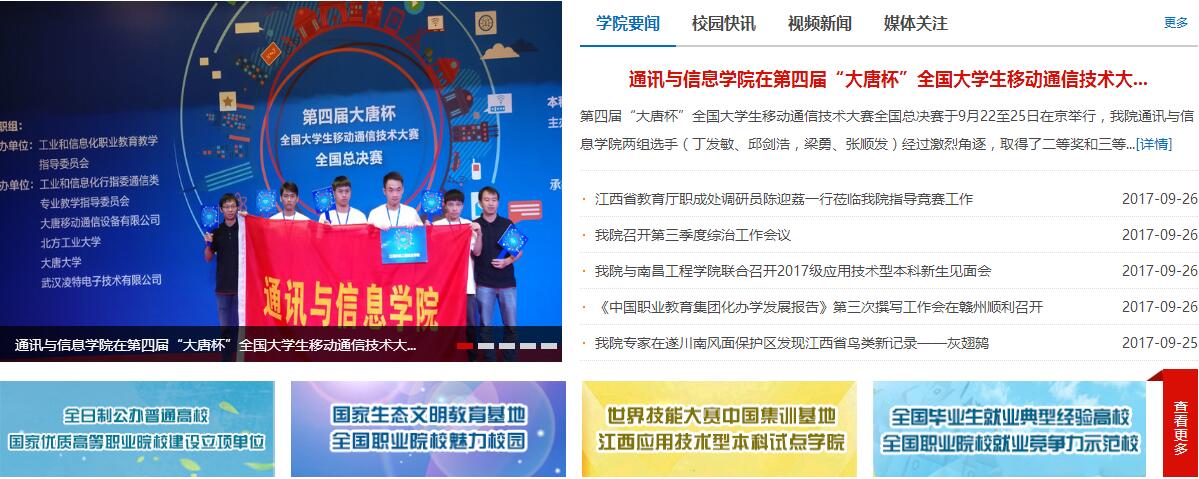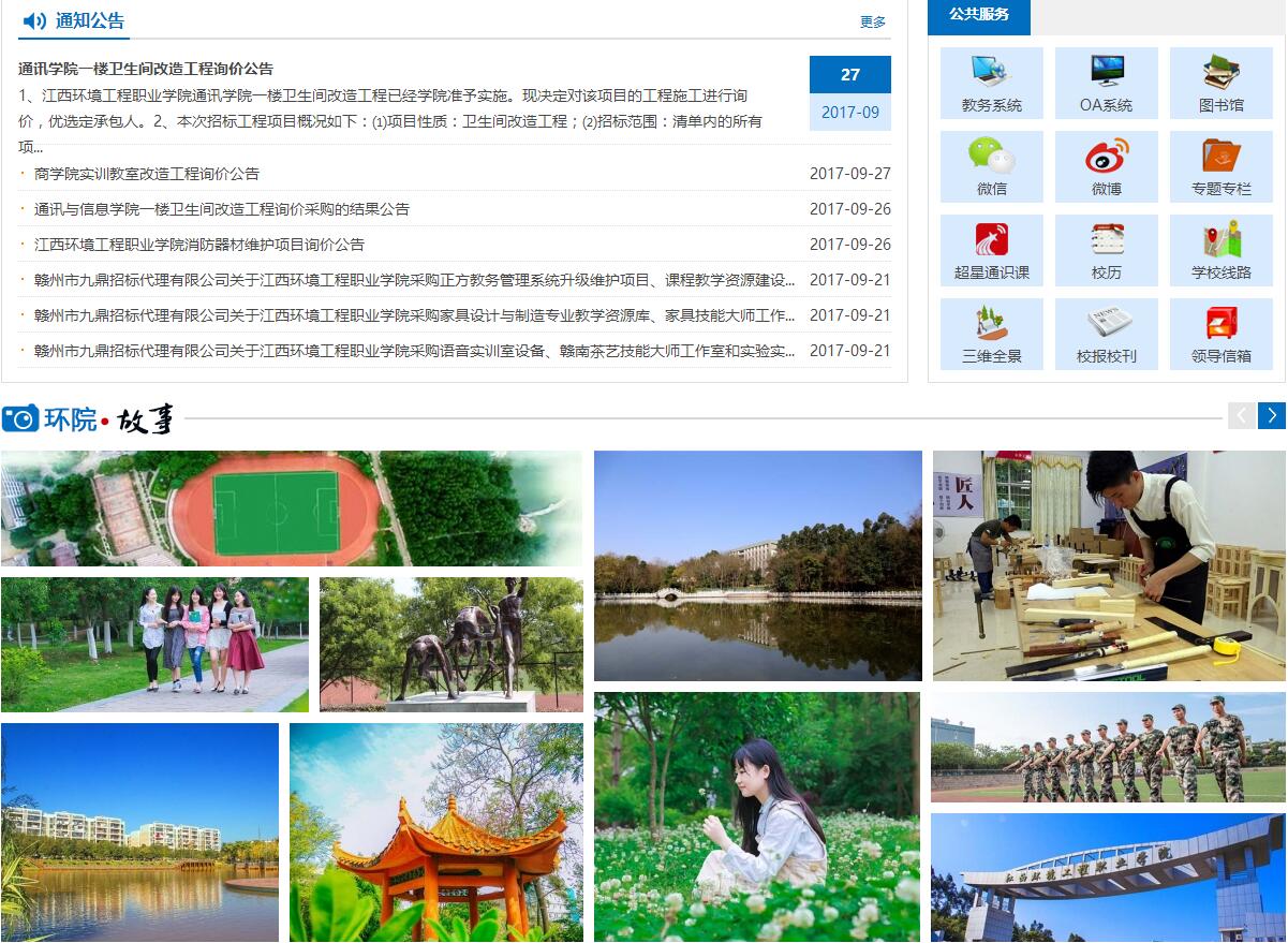 江西環(huán)境工程職業(yè)學院是一所以生態(tài)環(huán)境為特色的全日制公辦省級示范性高等職業(yè)院校,是世界技能大賽家具項目國家集訓基地,是國家優(yōu)質高職院校建設單位、國家生態(tài)文明教育基地、全國職業(yè)院校魅力校園、全國科普教育基地、“2014年度全國畢業(yè)生就業(yè)典型經驗高校”(俗稱“全國就業(yè)50強”)、全國就業(yè)競爭力示范校、全國第二批職業(yè)院校數字校園建設實驗校,是江西省文明單位、江西省“森林校園”、江西省“平安校園”。