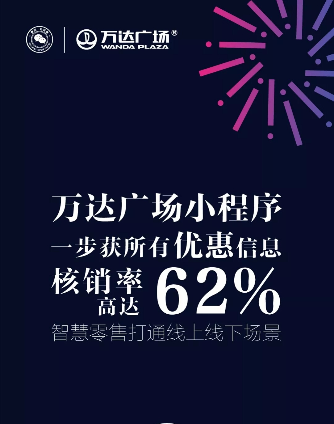 萬達廣場在全國206個萬達購物中心進行了一場“小程序營銷”試驗,將信息整合在一個小程序上,讓顧客只需一步就能獲取整個購物中心的各種優(yōu)惠信息,還能實現智能停車、限時搶購,提升了用戶對優(yōu)惠券的使用率,核銷率高達62%,這不僅節(jié)省了商鋪的宣傳成本,也幫助購物中心進行了智慧化管理。